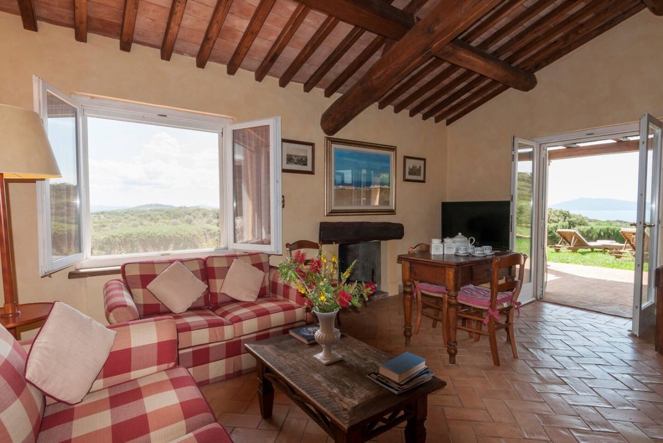 Casa Rose e' un appartamento di circa 65 mq, ristrutturato e arredato con semplicita' e gusto con diretto accesso ad un giardino privato con vista sul porto di Talamone L'appartamento comprende due camere da letto doppie, due bagni, una cucina completa, un salotto/camera da pranzo con caminetto ed un sistema autonomo di aria condizionata e riscaldamento, WiFi e TV.